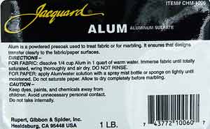 Alum is for pre-treating fabric before marbling so designs transfer well.