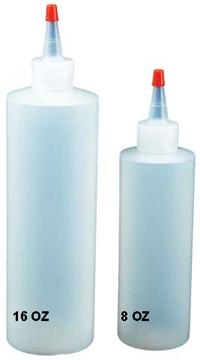 These plastic bottles are often used for applying dye in tie-dye. The applicator tip is a tapered cone shape and comes with a small removable tip-cap. There are an endless number of other uses for these standard studio tools, including application of paint, resist, glue and more.